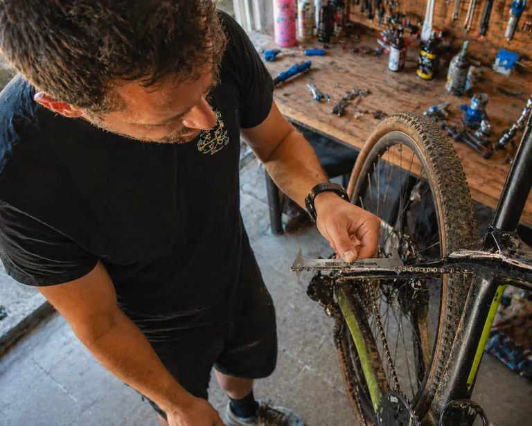 *¿Quieres hacerlo bien del todo? Existe una herramienta específica llamada medidor de cadena (o chain checker). Cuesta menos de 10€, se mete entre los eslabones y te dice exactamente si la cadena está al límite. Muy recomendable tenerlo en casa, especialmente si sales con frecuencia.